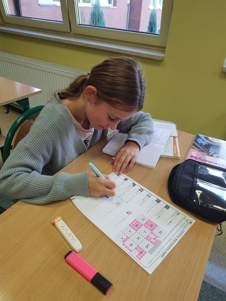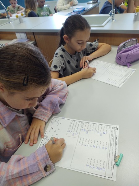 W czasie lekcji matematyki uczniowie klas 7 i 8 zaznaczali wyznaczone punkty w układzie współrzędnych. Klasy 5 i 6 wykorzystywały kolejność wykonywania działań w kodowaniu zadań,