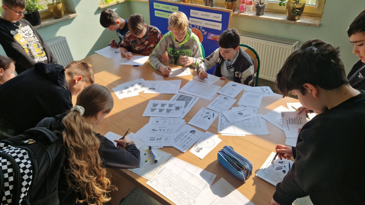 W ubiegłym tygodniu obchodziliśmy w szkole Europejski Dzień Mózgu. Z tej okazji w poniedziałek w bibliotece szkolnej dla chętnych uczniów został wyświetlony film animowany dot. pracy układu nerwowego i tego jak ważną rolę pełni mózg dla funkcjonowania człowieka, ze zwróceniem uwagi jak dbać o jego sprawność. W projekcji filmu uczestniczyło około 30 osób. W środę na każdej przerwie w gabinecie psychologa szkolnego organizowane były „Łamigłówki młodej główki”. Chętni uczniowie przychodzili potrenować swoje procesy poznawcze. We współpracy z uczniami powstała także gazetka edukacyjna nt. właściwych i nieodpowiednich dla układu nerwowego źródeł cukru. Układ nerwowy i jego zarządca – mózg, potrzebują tej substancji do ich prawidłowej pracy. Warto jednak zadbać o to, aby cukier ten pochodził z dobrych źródeł i odpowiednich grup produktów. Źródła cukru rafinowanego, których przykłady zaprezentowane są po prawej stronie gazetki, nie są odpowiednim paliwem dla naszego układu nerwowego i wpływają negatywnie na jego pracę – m.in. na zdolność koncentracji uwagi, myślenie, zachowanie, naukę.