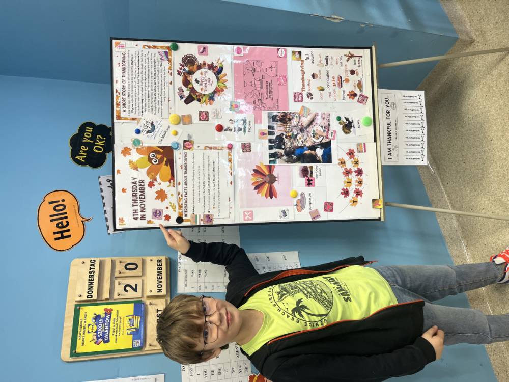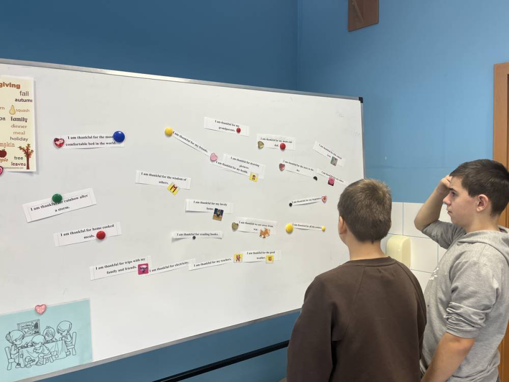 W naszej szkole odbyła się wyjątkowa lekcja języka angielskiego poświęcona amerykańskiemu Świętu Dziękczynienia – Thanksgiving. Uczniowie poznali historię i tradycje związane z tym ważnym dniem, a następnie zastanawiali się, za co sami są wdzięczni, zapisując swoje refleksje na przygotowanych kartkach.