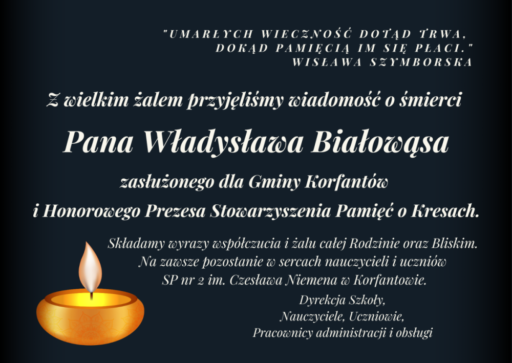 Z wielkim żalem przyjęliśmy wiadomość o śmierci