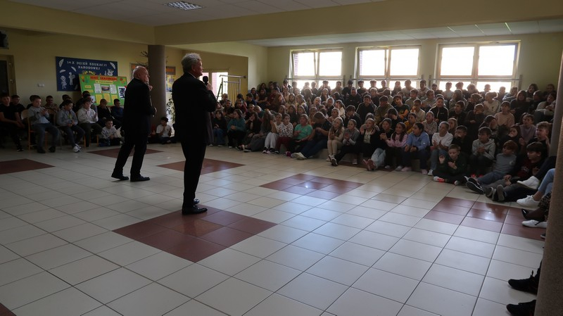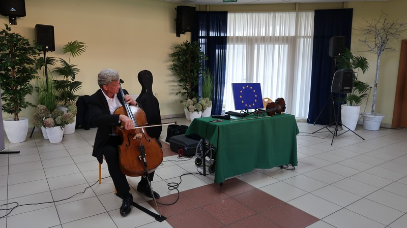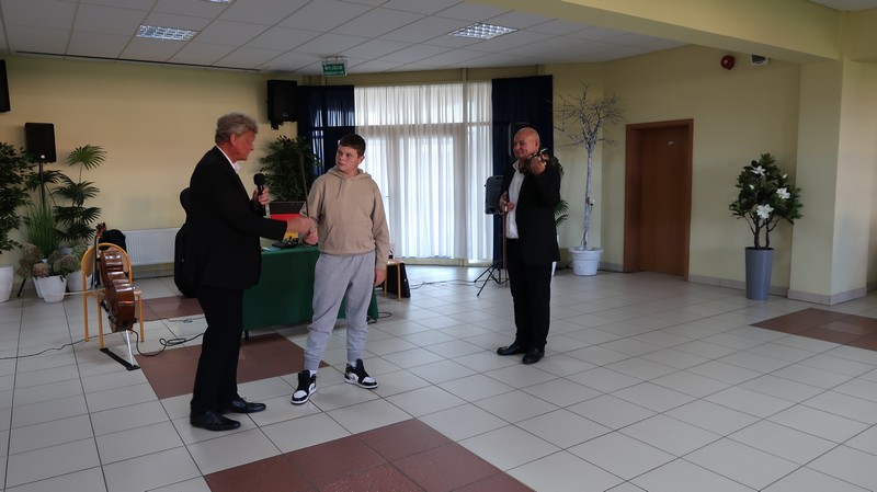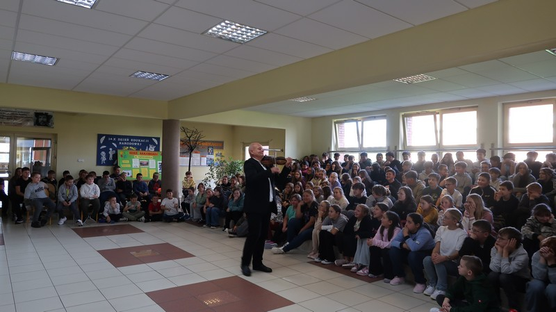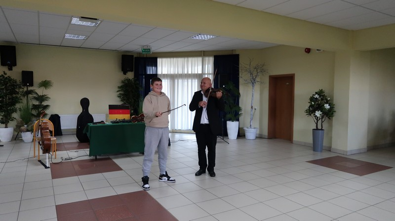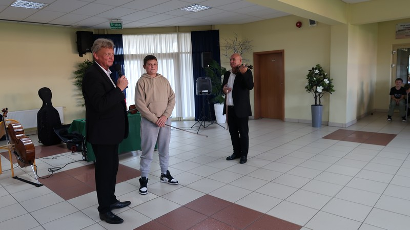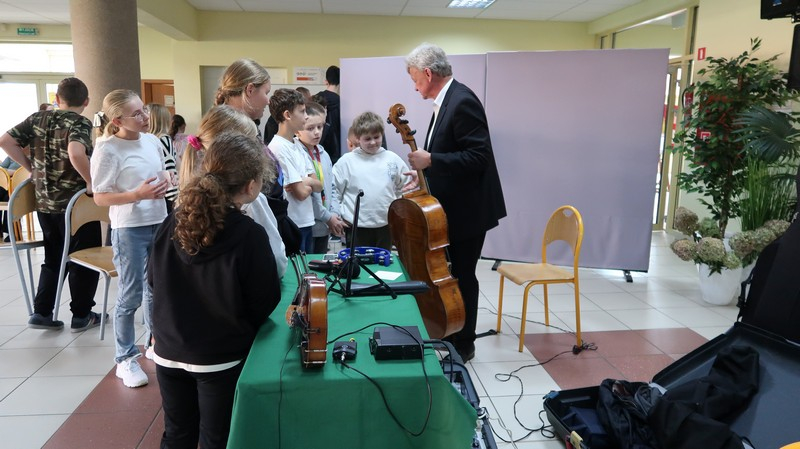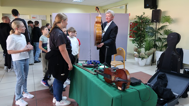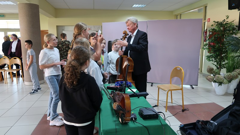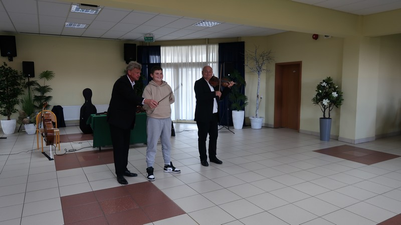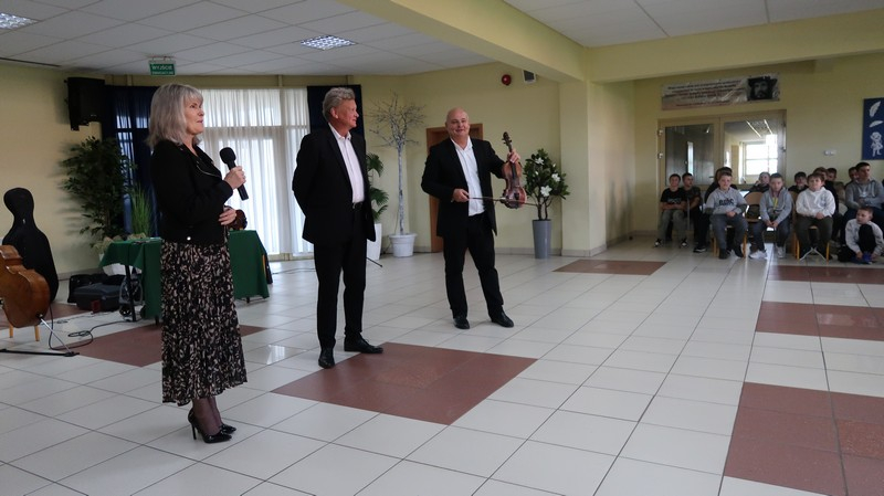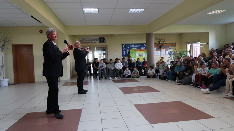 Wczoraj gościliśmy w szkole duet smyczkowy stworzony przez Panów Krzysztofa Orzechowskiego i Wojciecha Marcinowskiego. Muzycy zapoznali nas z grupą instrumentów strunowych-smyczkowych - wiolonczelą, skrzypcami i altówką. W trakcie muzycznego spotkania Panowie zaprezentowali utwory muzyczne do tańców narodowych wywodzących się z różnych krajów Unii Europejskiej. Nie zabrakło także polskich utworów. Atmosfera panująca w trakcie muzycznego spotkania była wyśmienita, a uczniowie chętnie włączali się w proponowane przez muzyków aktywności. Występ został sfinansowany przez Radę Rodziców.