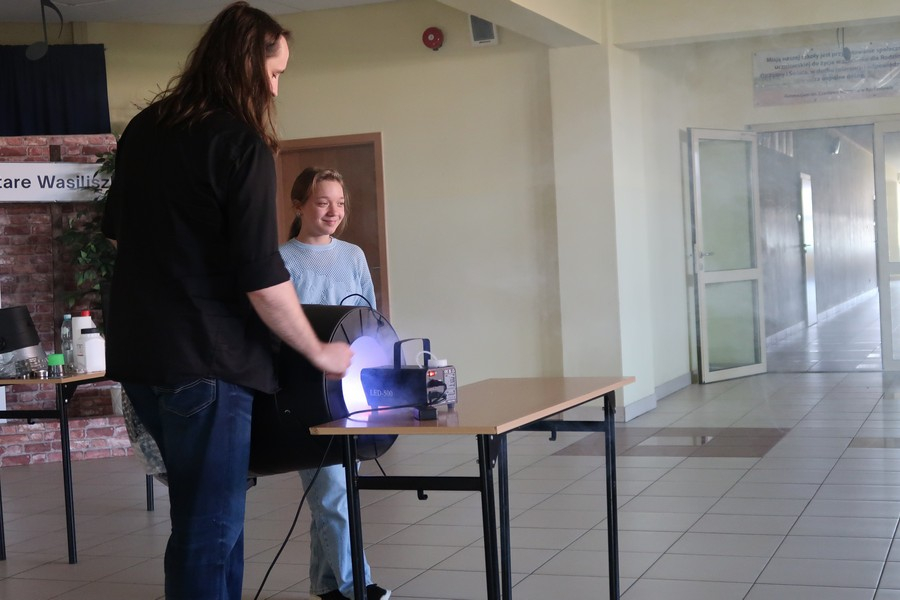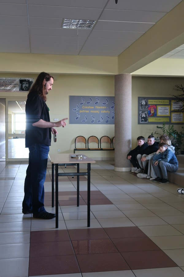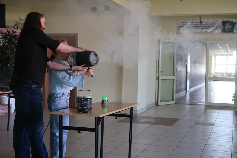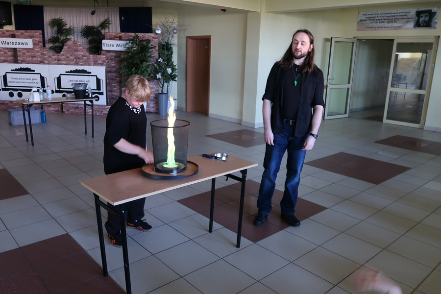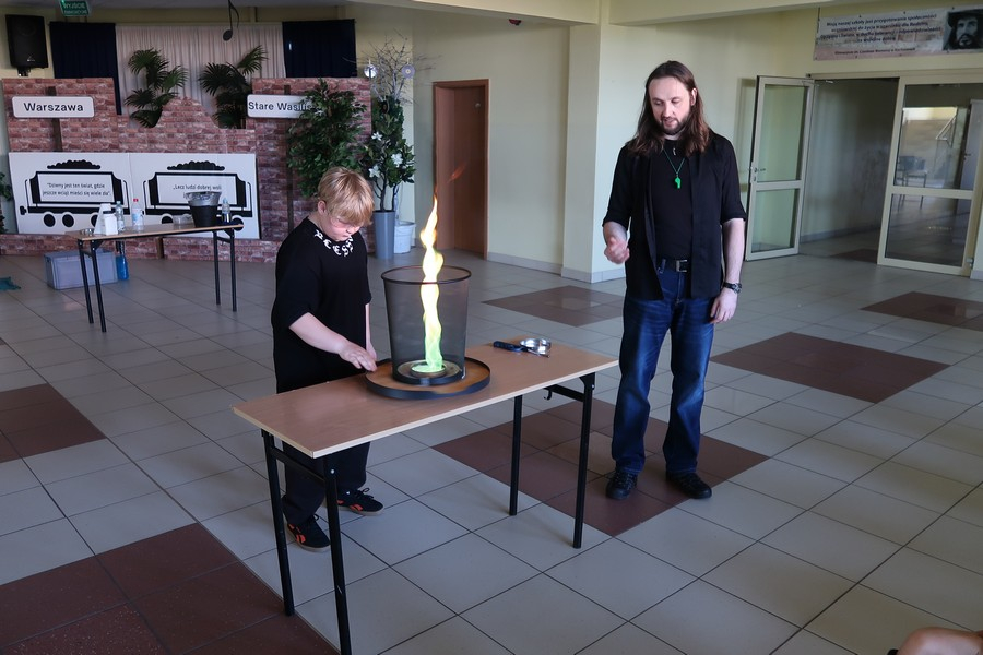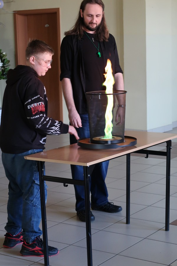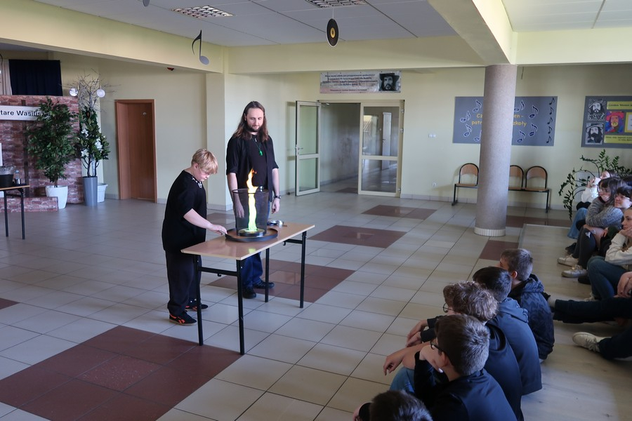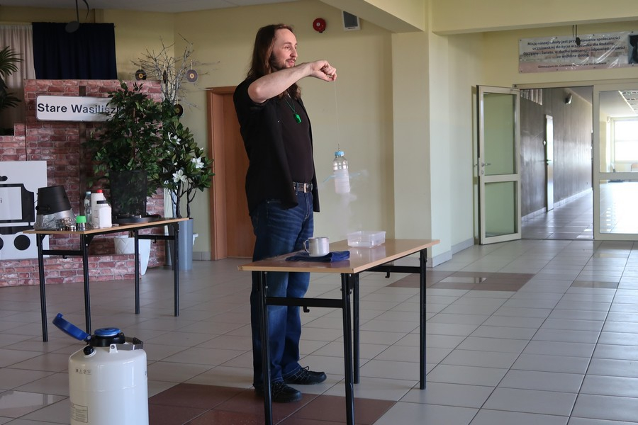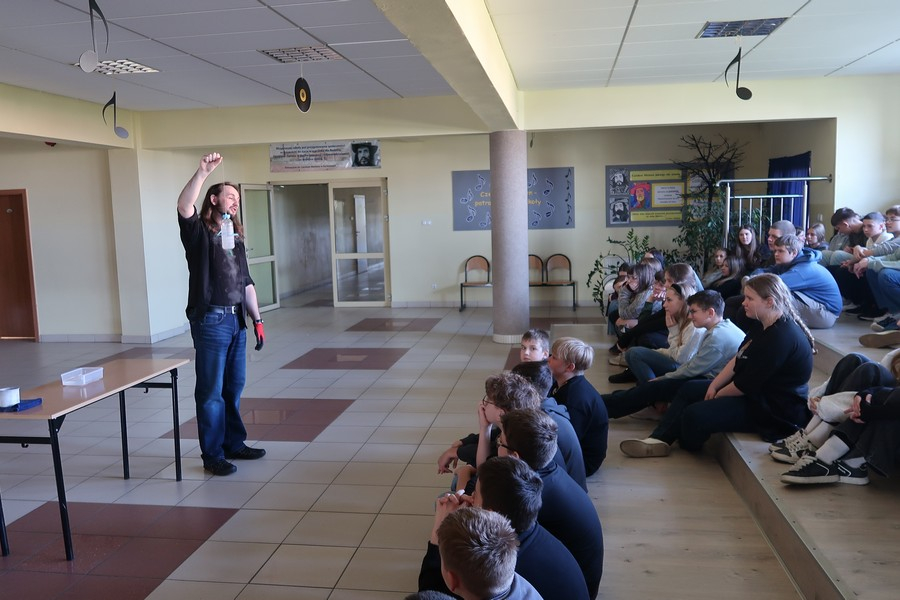 Pokaz cieszył się ogromną popularnością wśród uczniów, którzy z dużym zainteresowaniem obserwowali prezentowane doświadczenia. Mateusz Łucki w ciekawy i przystępny sposób zaprezentował nowe eksperymenty, angażując młodzież i zachęcając do odkrywania tajemnic nauki.