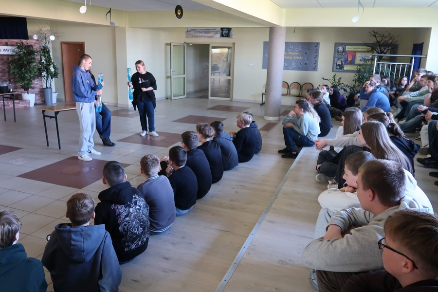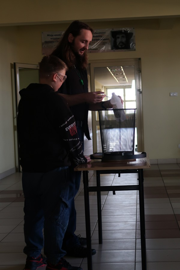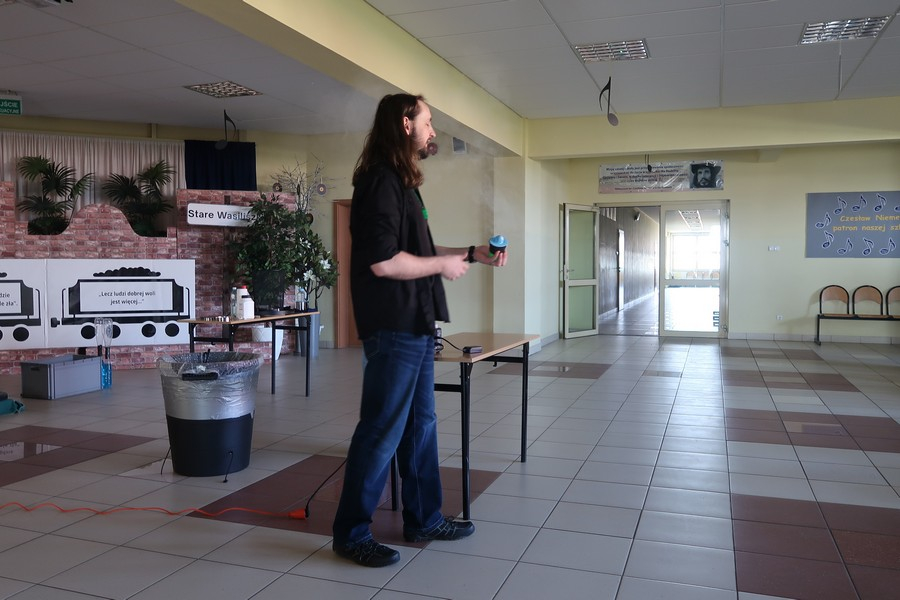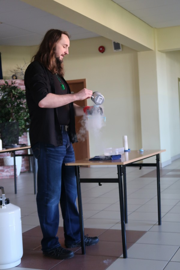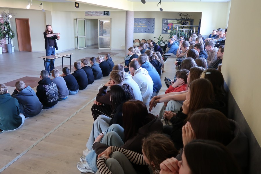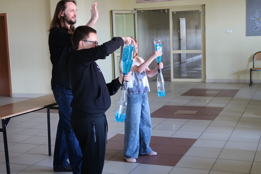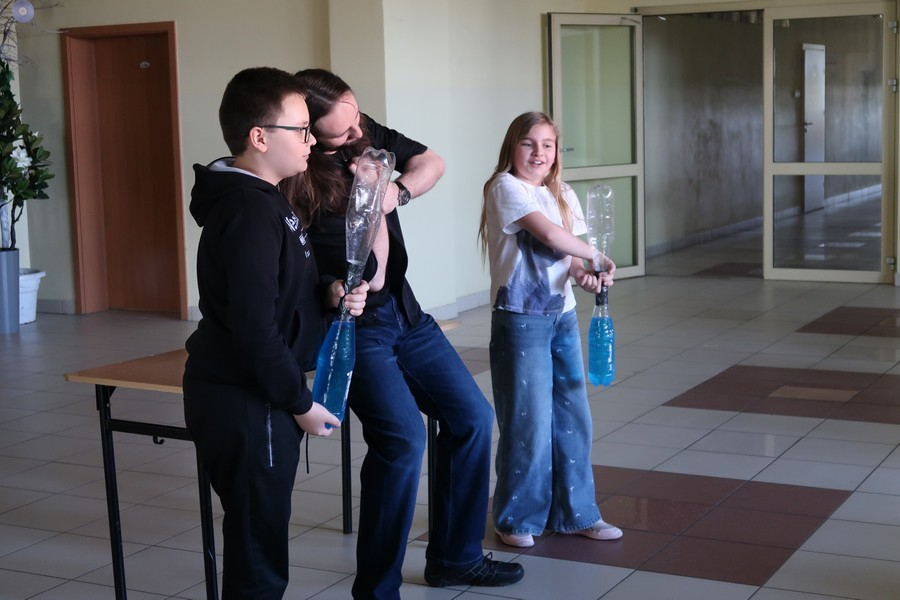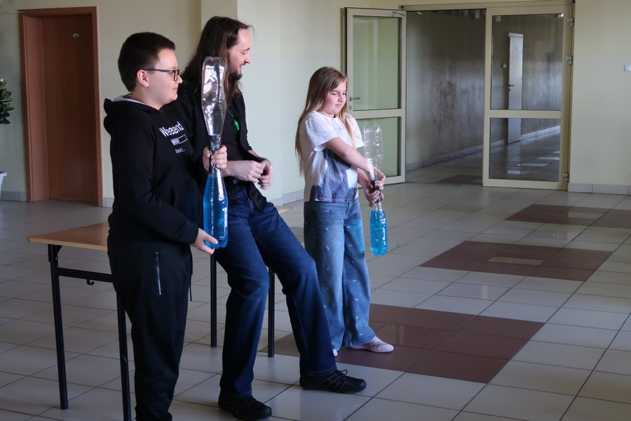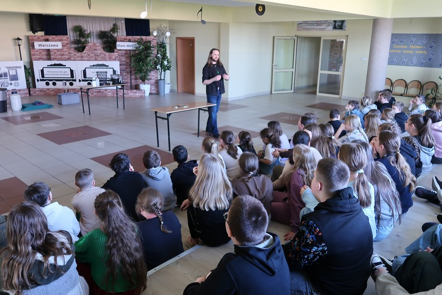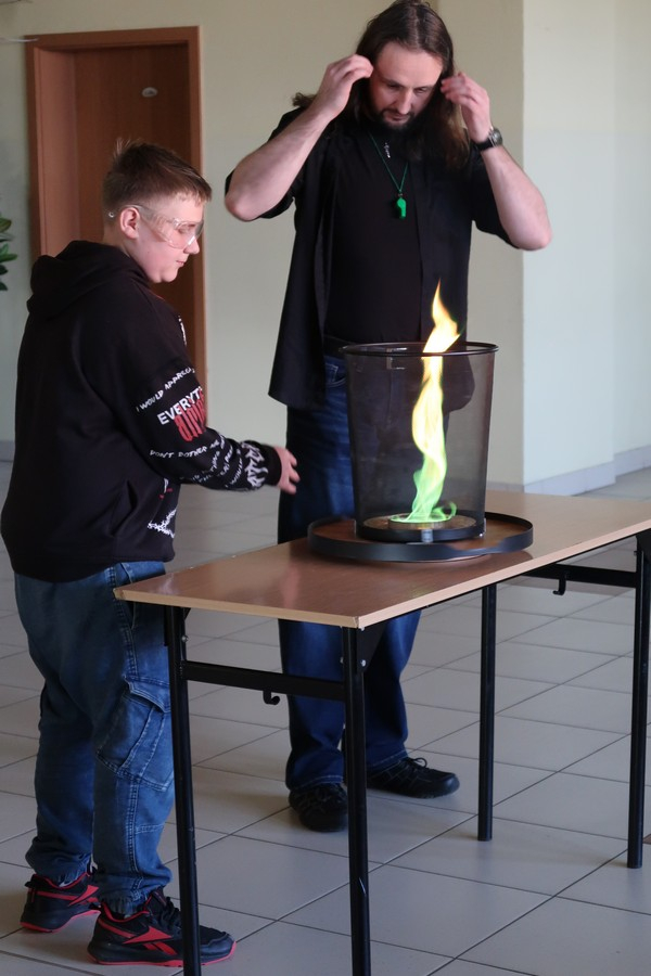 Pokaz cieszył się ogromną popularnością wśród uczniów, którzy z dużym zainteresowaniem obserwowali prezentowane doświadczenia. Mateusz Łucki w ciekawy i przystępny sposób zaprezentował nowe eksperymenty, angażując młodzież i zachęcając do odkrywania tajemnic nauki.