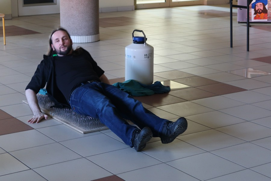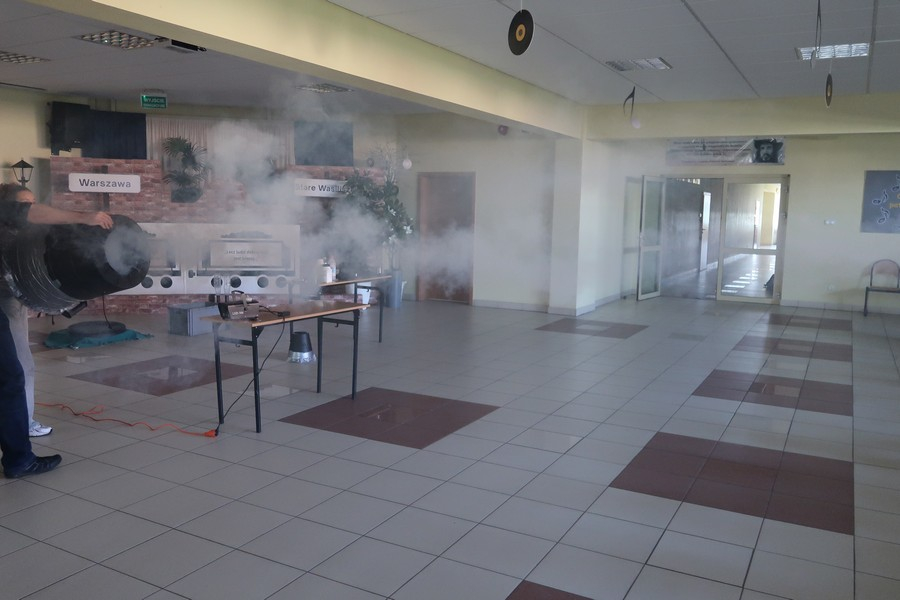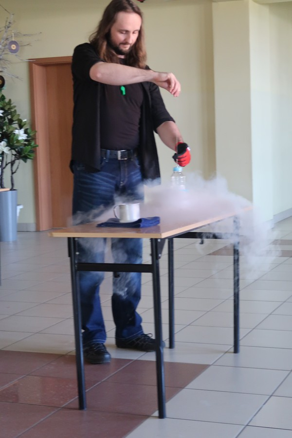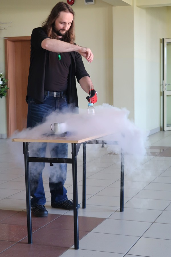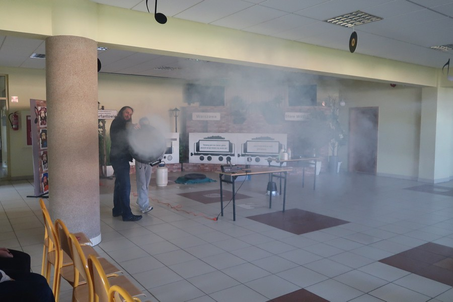 Wśród zaprezentowanych doświadczeń znalazły się m.in. turbina Herona, dysk Eulera, fala akustyczna i uderzeniowa, ogniste tornado, łoże fakira oraz pokazy z wykorzystaniem ciekłego azotu i jego niezwykłych możliwości.
