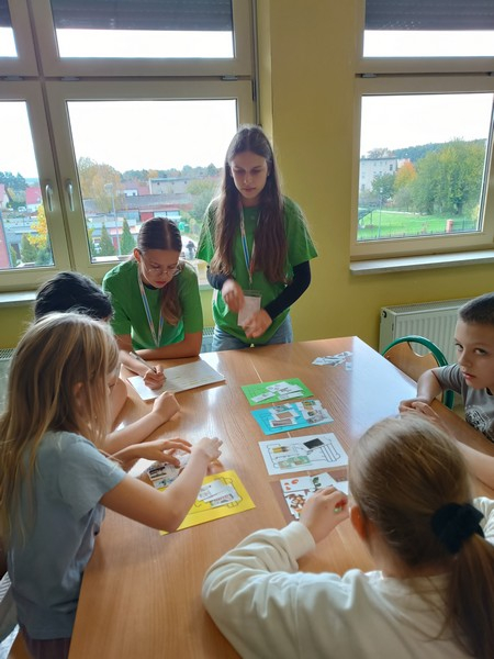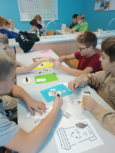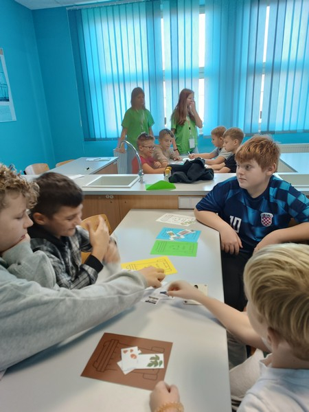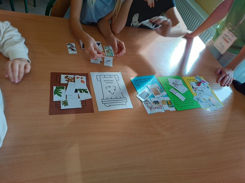 Po części teoretycznej przyszedł czas na działanie! W drugiej części zajęć odbyły się warsztaty, podczas których uczniowie samodzielnie segregowali odpady do odpowiednich pojemników. Każda grupa miała okazję sprawdzić swoją wiedzę w praktyce i przekonać się, że właściwa segregacja to nie tylko obowiązek, ale także prosty sposób na ochronę naszej planety.