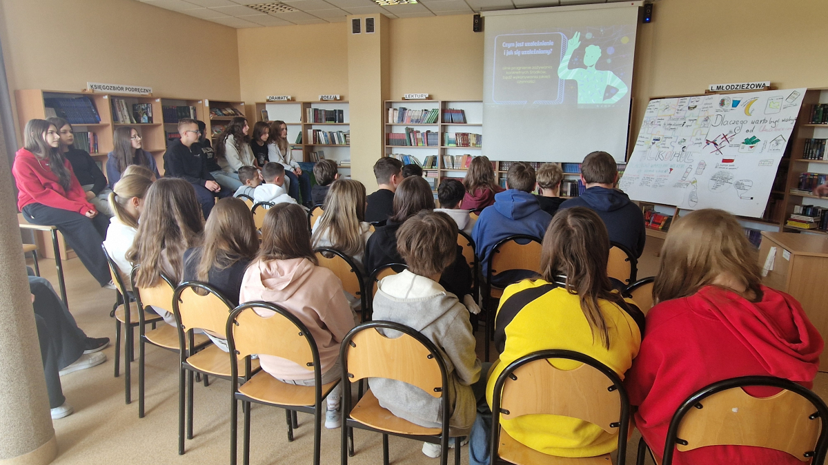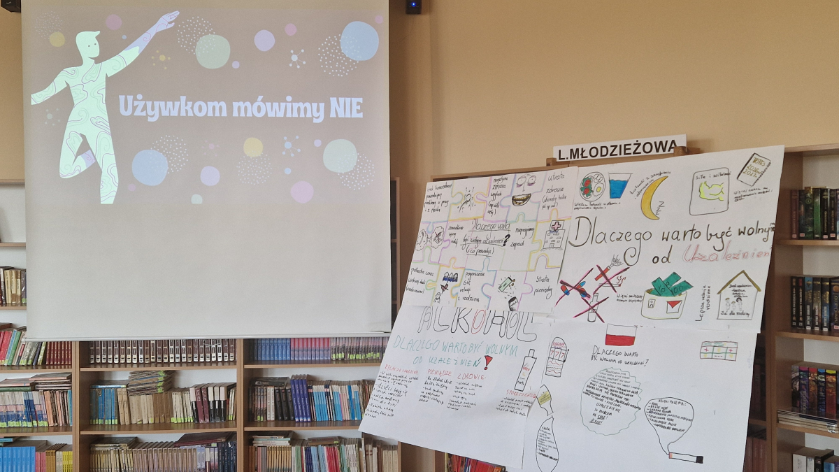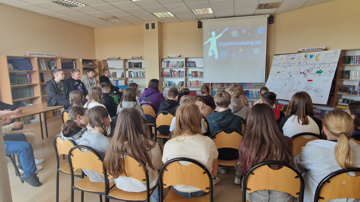 W środę 11 marca Panie pedagog szkolny i psycholog szkolny przeprowadziły pogadanki w klasach pt.: „Używkom mówimy nie”. W trakcie spotkań z uczniami odbył się quiz „Fakty i mity nt. uzależnień”. W ramach tej akcji profilaktycznej, organizowanej co roku we współpracy z Gminną Komisją Rozwiązywania Problemów Alkoholowych, uczniowie klasy 7a przygotowali plakaty dotyczące skutków uzależnień i podkreślające zalety życia wolnego od uzależnień.