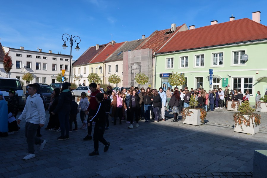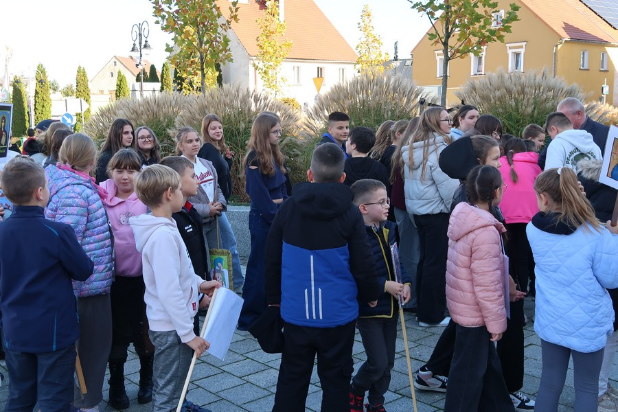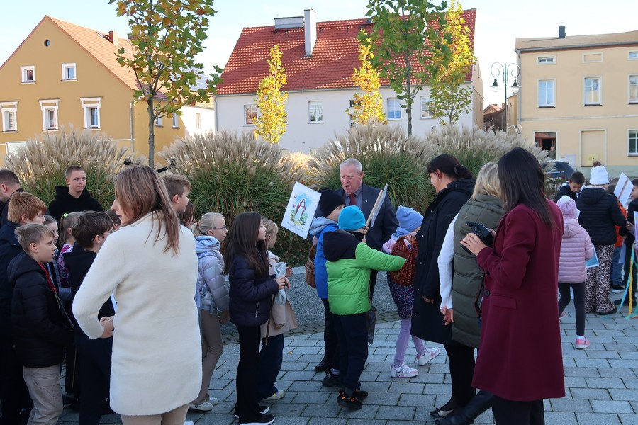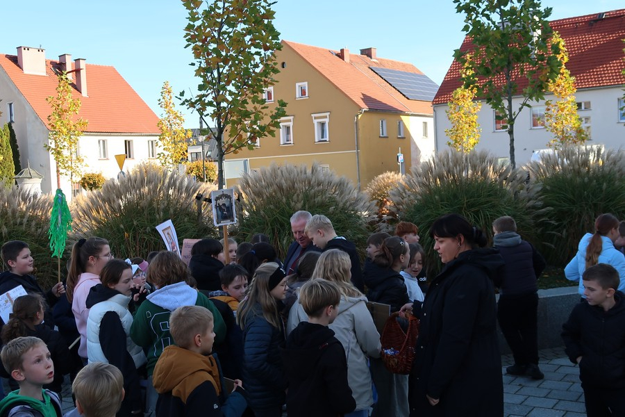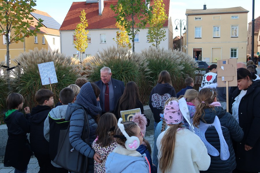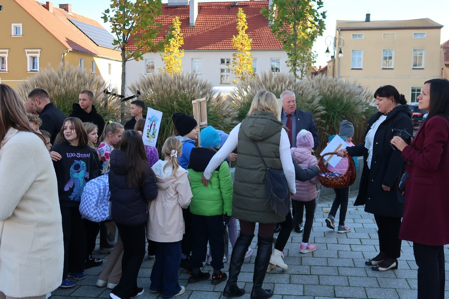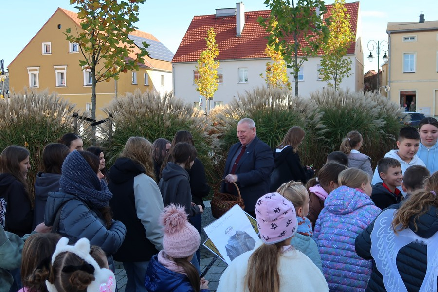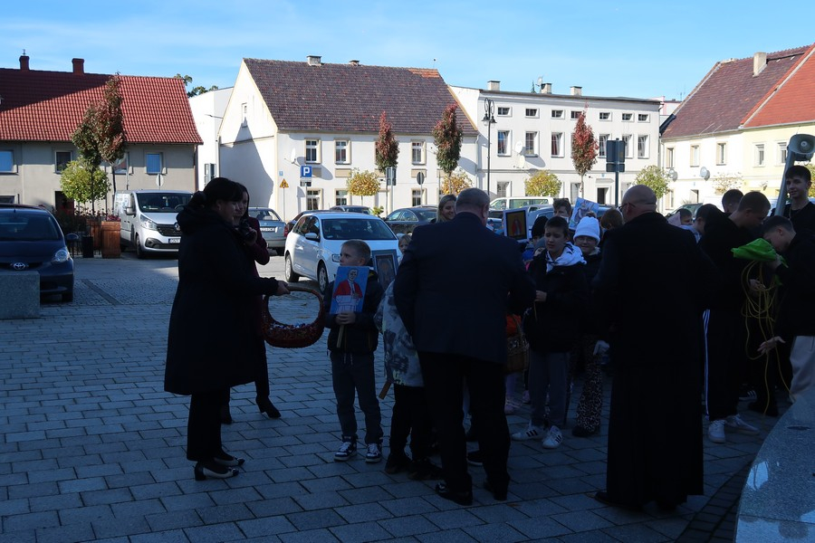 Na rynku uczestników powitał Burmistrz Korfantowa, który z radością częstował uczniów słodyczami, dziękując im za piękne świadectwo wiary i wspólnoty.