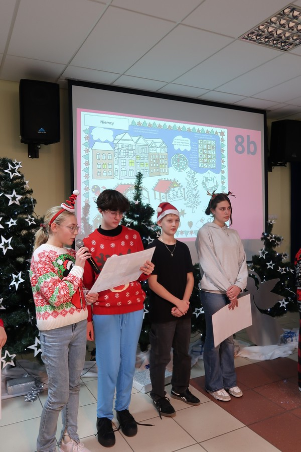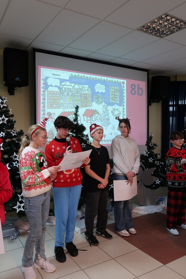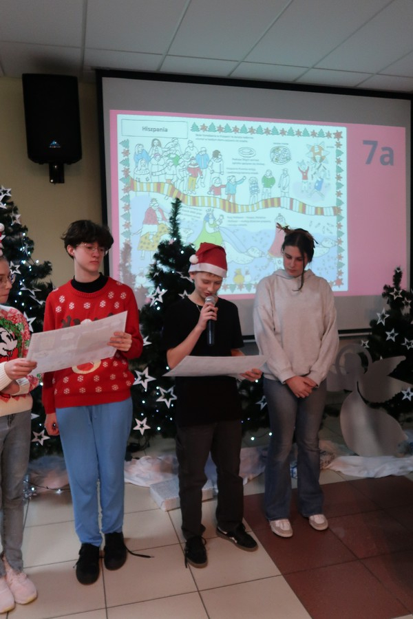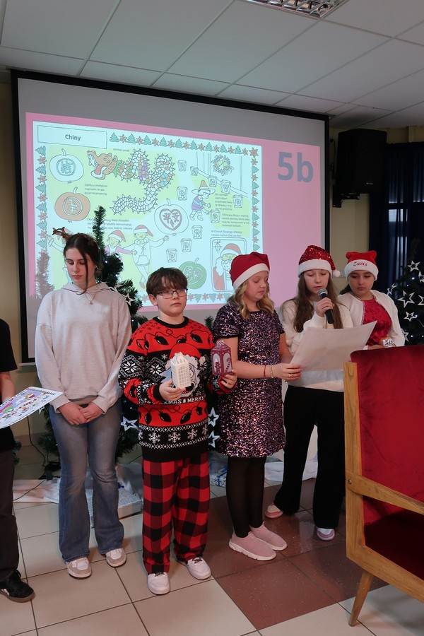 W ramach wizyty uczniowie przygotowali także podróż po świecie, prezentując ciekawostki o tradycjach bożonarodzeniowych z różnych krajów. Dzięki ich pracy mogliśmy dowiedzieć się, jak święta obchodzone są m.in. w Czechach, Meksyku, Chinach czy Australii.