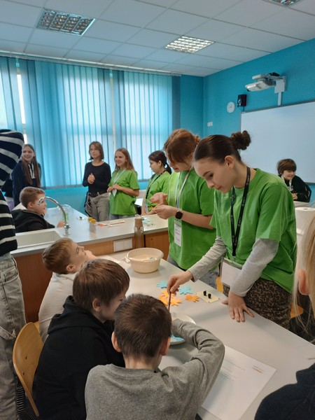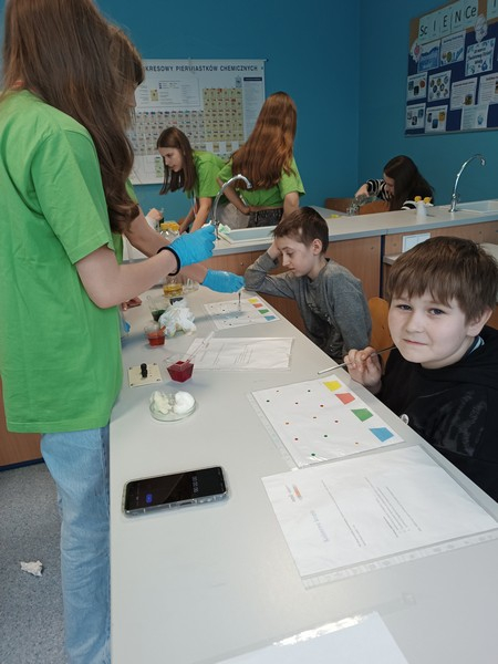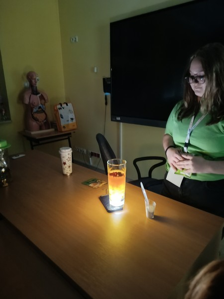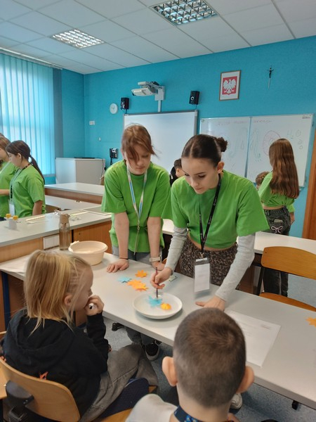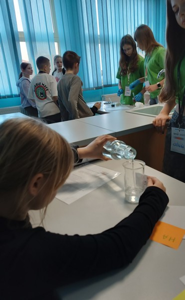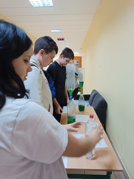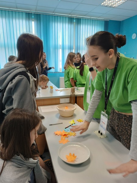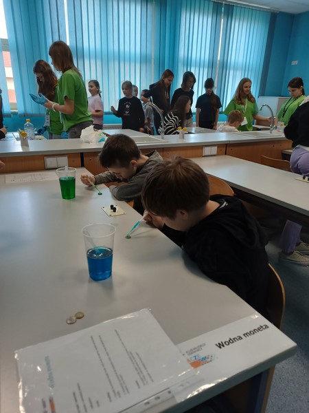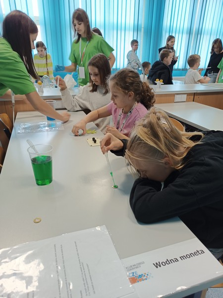 Podczas doświadczeń uczestnicy  badali  napięcie powierzchniowe, kapilarność, rozpuszczalność różnych substancji, a także sposób przechodzenia i załamywania światła w wodzie. Członkowie klubu z zaangażowaniem wyjaśniali przebieg eksperymentów i pomagali młodszym kolegom w ich wykonaniu.