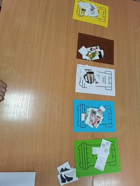 Po części teoretycznej przyszedł czas na działanie! W drugiej części zajęć odbyły się warsztaty, podczas których uczniowie samodzielnie segregowali odpady do odpowiednich pojemników. Każda grupa miała okazję sprawdzić swoją wiedzę w praktyce i przekonać się, że właściwa segregacja to nie tylko obowiązek, ale także prosty sposób na ochronę naszej planety.