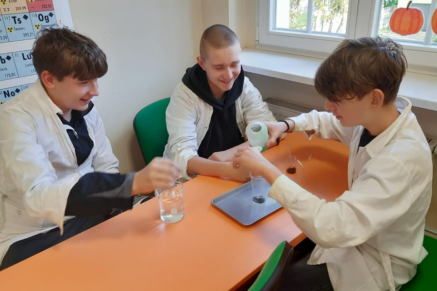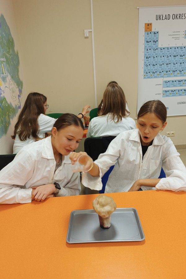 Tu uczniowie wcielili się w rolę chemików, wykonując ciekawe doświadczenia i odkrywając, jakie zaskakujące efekty mogą przynieść reakcje chemiczne.